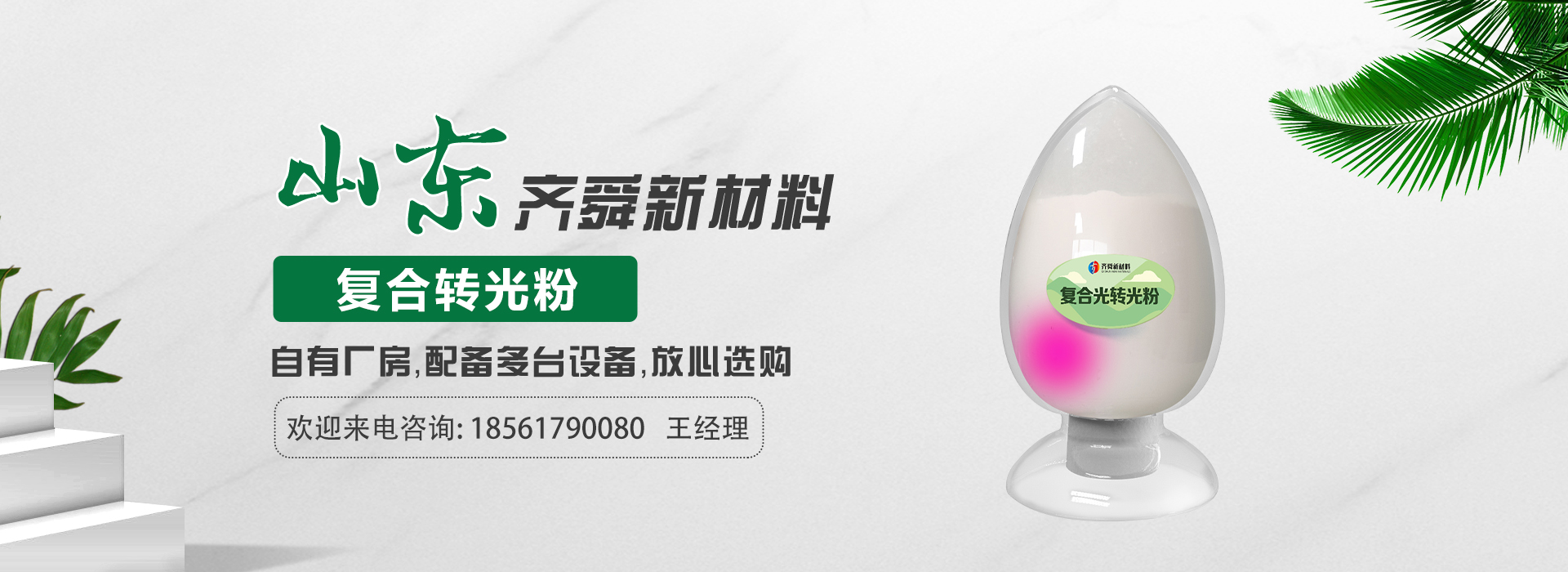 我公司前身為2011年成立的淄博舜明熒光科技有限公司。隨著公司的發(fā)展,廠址從淄博搬遷到青島,2020年5月公司重新注冊(cè)為山東齊舜新材料有限公司。公司注冊(cè)資本2000萬(wàn)元,主要從事新材料研究和開(kāi)發(fā)。目前主要產(chǎn)品包括:農(nóng)膜用轉(zhuǎn)光粉、轉(zhuǎn)光母粒以及轉(zhuǎn)光農(nóng)膜;農(nóng)膜用長(zhǎng)效防霧流滴涂覆液;復(fù)合肥添加劑及葉面肥(稀土微肥);防偽粉;LED封裝熒光粉;夜光粉;太陽(yáng)能光伏電池增效熒光粉;鋰電池正極材料等。